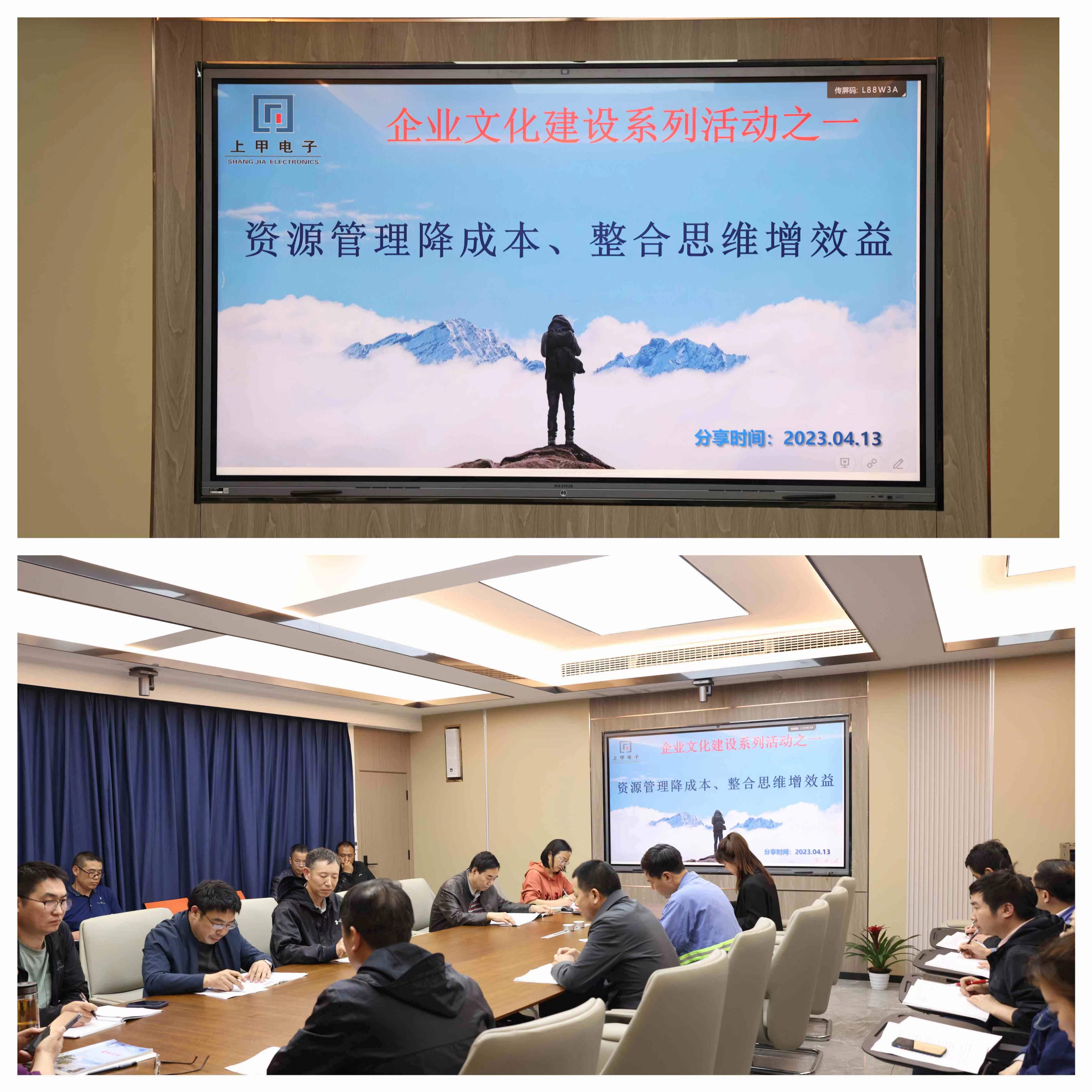 4月13日14:00時,重慶上甲電子股份有限公司組織中高層管理人員召開關(guān)于“資源管理降成本、整合思維增效益”的開源節(jié)流活動,各部門就如何實現(xiàn)開源節(jié)流、降本增效進行了充分討論和梳理。