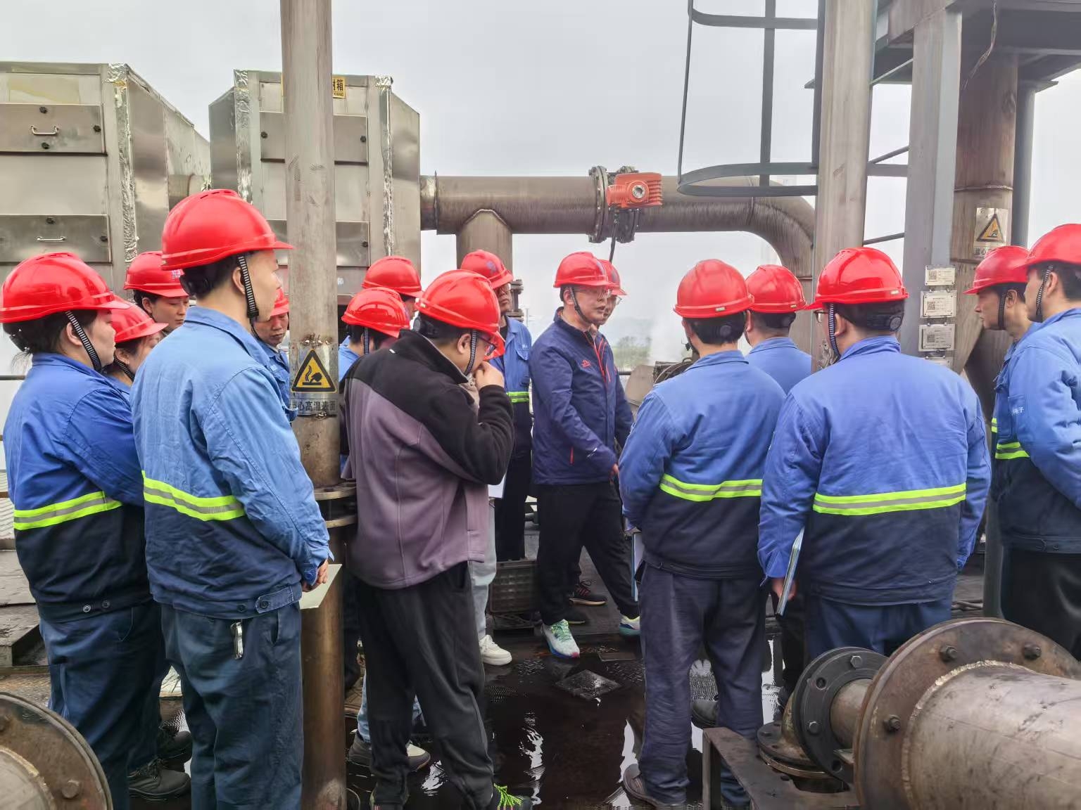 黎總一行詳細(xì)查看了生產(chǎn)線運(yùn)作情況,對(duì)設(shè)備、消防安全及人員操作規(guī)范等方面進(jìn)行了悉心指導(dǎo)。在還原引風(fēng)機(jī)處,黎總針對(duì)公司高風(fēng)險(xiǎn)場(chǎng)所進(jìn)行的包含檢維修活動(dòng)在內(nèi)的非正常工況狀態(tài)下的風(fēng)險(xiǎn)管控措施如何有效落實(shí),達(dá)到控制風(fēng)險(xiǎn),避免事故發(fā)生的情形與大家進(jìn)行深入交流并提出安全生產(chǎn)工作要求。黎總強(qiáng)調(diào):安全是企業(yè)發(fā)展的生命線,務(wù)必做到防患于未然。